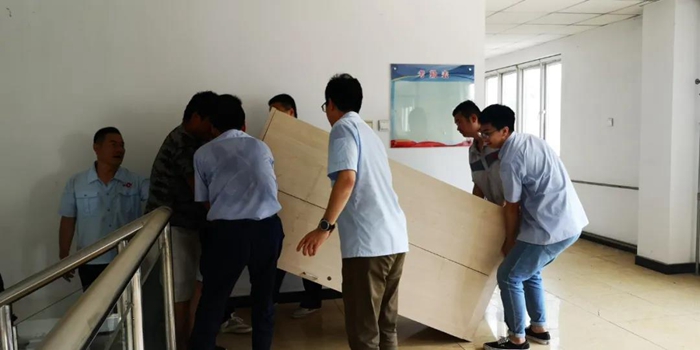 當日天氣十分潮濕悶熱,不動都是一身汗,但是黨員同志們在周玉斌的帶領下,一件一件搬動近兩米的衣柜,一步一步搬運至宿舍樓四樓。經過大家的共同努力,終于將幾組衣柜搬運到了新員工宿舍,并細致地更換了柜鎖。