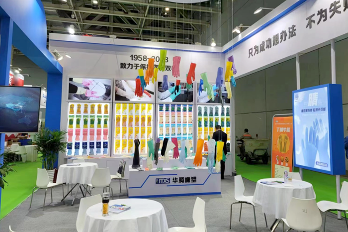 新的LOGO不僅展示著企業(yè)新形象,更昭示著華騰橡塑融入國(guó)內(nèi)大循環(huán)、國(guó)內(nèi)國(guó)際雙循環(huán)的雄心。10月15日,華騰橡塑銷售團(tuán)隊(duì)專程來(lái)到廣州,參加第134屆中國(guó)進(jìn)出口商品交易會(huì)(廣交會(huì)),在“工具展區(qū)”和“新材料及化工產(chǎn)品展區(qū)”架設(shè)兩大展位,全面推銷橡塑乳膠手套產(chǎn)品和膠板產(chǎn)品。在手套產(chǎn)品展位,展示了公司的家用手套和工業(yè)用手套。多種材質(zhì)、用途可以充分滿足客戶的不同需求。公司自主研發(fā)的絕緣手套和干箱手套備受觀眾關(guān)注;在膠板產(chǎn)品展位,展示了工業(yè)、牧場(chǎng)、運(yùn)動(dòng)等系列膠板產(chǎn)品,花型種類豐富,可滿足多種場(chǎng)合的應(yīng)用需求。
