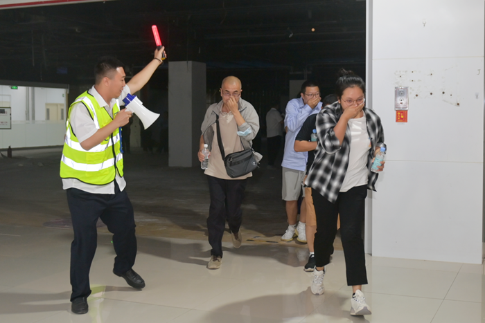園區(qū)模擬突發(fā)火情。在第一時(shí)間發(fā)現(xiàn)“火情”后,園區(qū)立即啟動(dòng)應(yīng)急預(yù)案,組織撲滅初期火情,組織人員疏散。整個(gè)過(guò)程訓(xùn)練有素,專業(yè)化程度高。