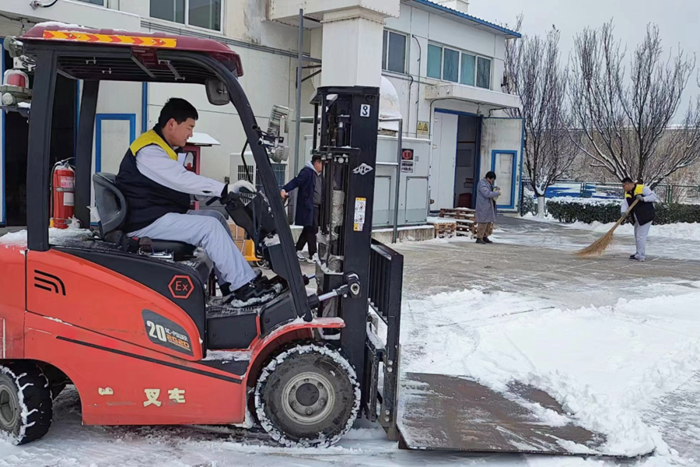 北普公司保供首都多家三甲醫院醫用氧和航空航天、微電子等重點產業特種氣體供應,為確保正常供應萬無一失,早在大雪前夕,公司專門對運輸產品車輛駕駛人員進行專項培訓。對車輛提前進行檢查,針對極寒天氣,對車輛電瓶、剎車制動等方面進行重點檢查,并提前加注適應寒冷天氣的燃料,避免大雪天氣啟動困難、燃油結蠟或者在外拋錨。同時,北普公司安排專人對華騰科技園區包裝氣項目施工現場開展融雪作業,根據降雪情況進行施工作業調整,停止室外作業,并根據雪情隨時做好應急準備。
