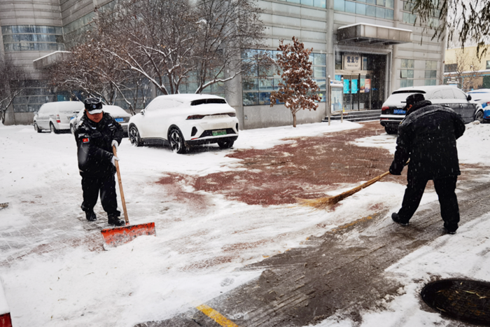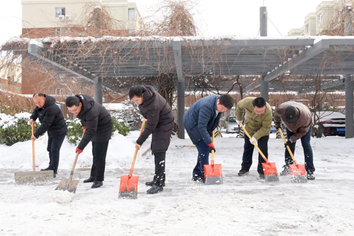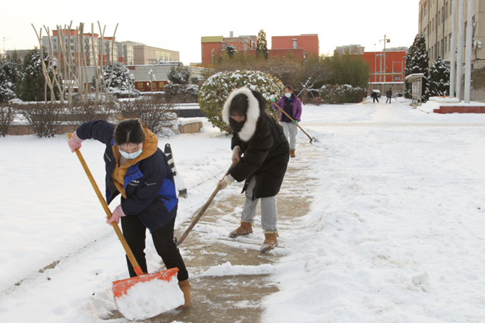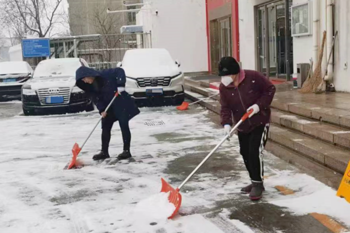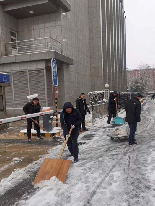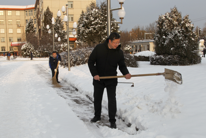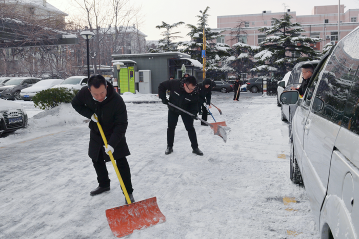 剛到單位的干部職工,紛紛拿起掃帚、鐵鍬,加入到掃雪除冰大“會戰”的隊伍中。大家齊心協力、現場一片熱火朝天,干凈整潔的道路很快清掃出來,保證了干部職工出行安全。