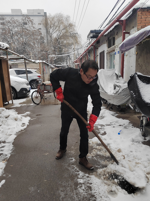 大雪天氣,住在老舊平房宿舍區的職工生活及出行困難,是化工集團領導十分牽掛的問題。為此,北搪公司早在下雪前,就對相關平房宿舍區開展冬季安全檢查,并預備好融雪劑等除雪物資。在大雪期間,北搪公司領導班子成員更是來到平房宿舍區,查看現場,組織干部職工鏟冰除雪,辟出安全出行通道,保證職工安全出行。