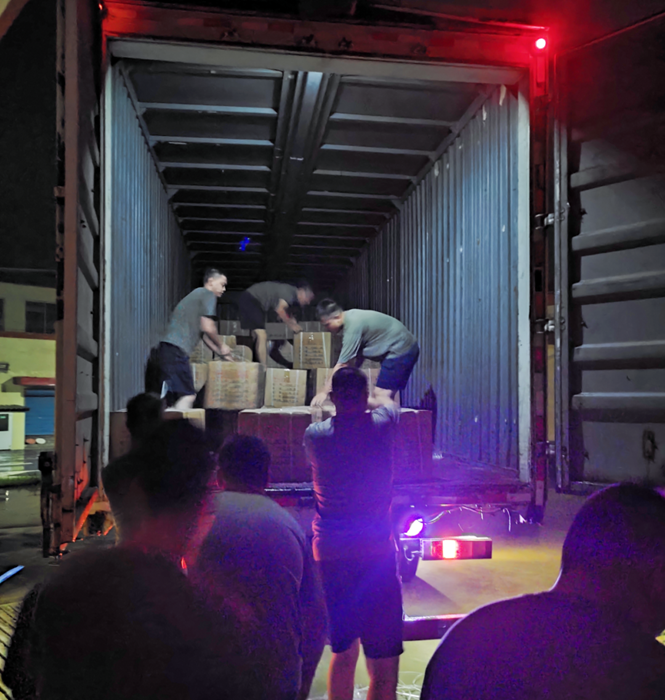 命令如山,華騰化工倉(cāng)儲(chǔ)管理部共產(chǎn)黨員朱雨、劉寶玉、張?jiān)骆昧⒓绰?lián)合公司值守人員安全保衛(wèi)部共產(chǎn)黨員劉兵、隋紅賓緊急集合,冒雨備貨裝車。僅用時(shí)4小時(shí)就完成全部物資的裝車。