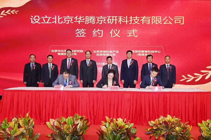 11月2日,北京化工集團(tuán)攜手京城機(jī)電共同舉行合資合作設(shè)立北京華騰京研科技有限公司簽約儀式,北京化工集團(tuán)黨委書(shū)記、董事長(zhǎng)王國(guó)華,京城機(jī)電黨委書(shū)記、董事長(zhǎng)阮忠奎,黨委副書(shū)記、總經(jīng)理王軍出席簽約儀式。北京化工集團(tuán)黨委副書(shū)記、總經(jīng)理陳宇主持簽約儀式。