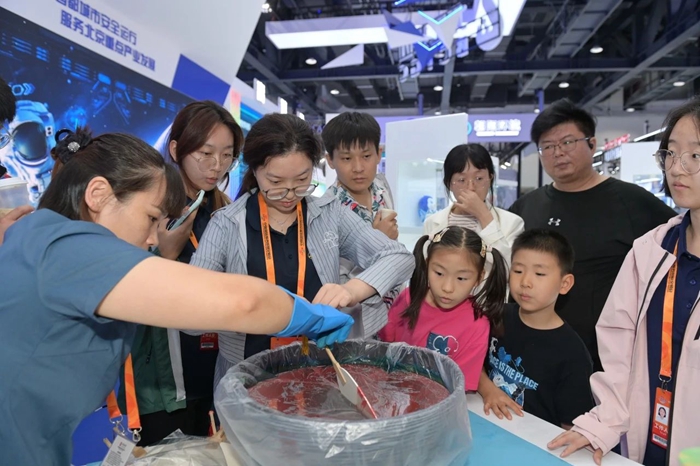 在展位現(xiàn)場,有的觀眾對于展示的儲氫瓶內(nèi)膽專用材料高度關(guān)注,并有強烈的合作意愿,有的觀眾對展示的軟包裝膠黏劑主動提出市場開發(fā)合作意向,還有很多觀眾帶著孩子逐一學(xué)習(xí)觀摩展出的化工領(lǐng)域創(chuàng)新產(chǎn)品??梢哉f,化工集團的主題展位既是商業(yè)合作的溝通交流平臺,又是了解化工、學(xué)習(xí)知識的科普教育平臺。