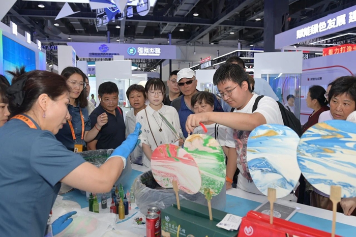 本屆展會,北京化工集團還創(chuàng)新性的將集團部分產(chǎn)品與文化創(chuàng)意緊密融合,設(shè)立“丙烯酸酯聚合物乳液”漆扇制作、“橡塑制品+502膠”創(chuàng)意包裝產(chǎn)品線上線下售賣等環(huán)節(jié),吸引大量觀眾前來打卡并紛紛點贊。