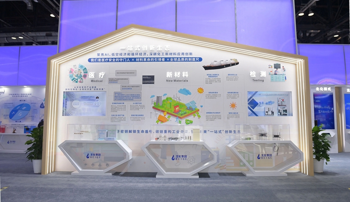 此次“首秀”,北京化工集團(tuán)精心打造了“三個(gè)北化”戰(zhàn)略主題展區(qū),以及新材料、醫(yī)療、檢驗(yàn)檢測、危化安全、建材、汽車材料六大區(qū)域展區(qū),重點(diǎn)展出了化研院、華騰新材等企業(yè)的新材料創(chuàng)新產(chǎn)品及服務(wù)。現(xiàn)場通過智能AI制造場景化演示,生動(dòng)呈現(xiàn)PBT、PA66、膠粘劑等北京化工集團(tuán)高性能材料,從建材、消費(fèi)電子到家用電器,全方位覆蓋的產(chǎn)業(yè)化應(yīng)用場景,彰顯出“技術(shù)+場景”雙向賦能的創(chuàng)新生態(tài),而新近成立的北化生科公司,則聚焦生物醫(yī)藥賽道,攜優(yōu)質(zhì)孵化轉(zhuǎn)化服務(wù)項(xiàng)目亮相科博會。