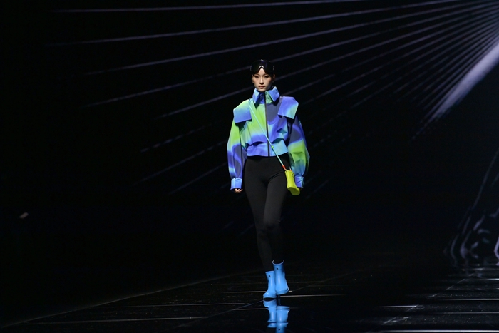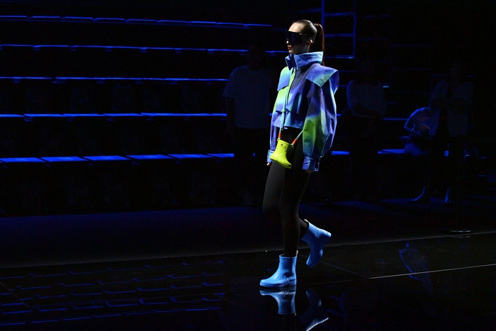 整個(gè)秀場(chǎng),靚麗前衛(wèi)的膠靴或踏于足下,或成為時(shí)尚新品挎于體側(cè),伴著強(qiáng)勁的樂曲,綻放出化工科技在時(shí)尚前沿的另類美學(xué)。