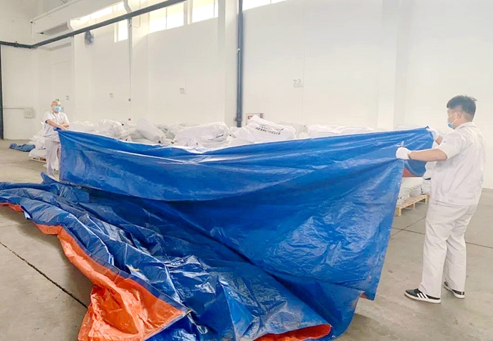 此次演練圍繞連日的強降雨造成地面水位上漲,南庫(應急物資庫)面臨滲水的危險為假想的突發汛期緊急事件展開。此次應急演練由公司主管安全工作副總經理曹會擔任演練總指揮,安全總監左剛擔任演練組長,公司安全生產部、保衛部、倉儲事業部、公用工程事業部全部參加演練。