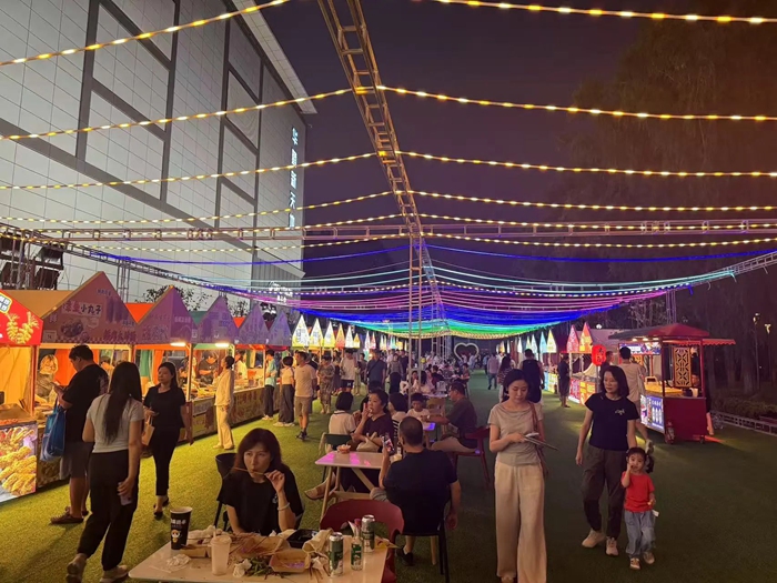 自夜市開(kāi)啟以來(lái),經(jīng)濟(jì)效益持續(xù)向好。華騰新天地商場(chǎng)客流量同比大幅增長(zhǎng),親子家庭消費(fèi)占比超過(guò) 60%。夜市中的市集匯聚了美食、潮玩等幾十家商戶,周末更有精彩的節(jié)目演出,現(xiàn)場(chǎng)人氣高漲,成為勁松地區(qū)打卡的熱門(mén)地標(biāo)。